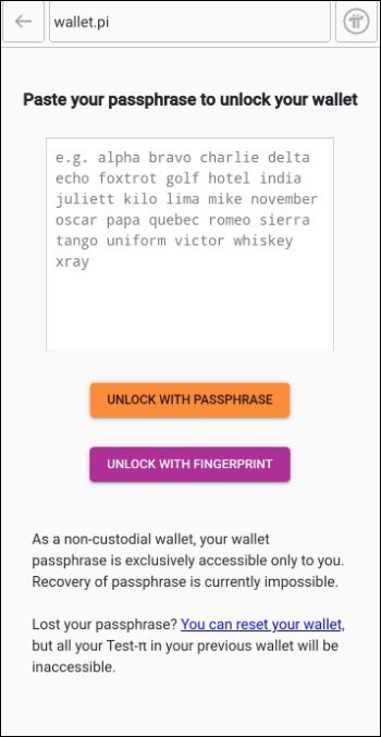 - You will need to enter this mnemonic each time you access your Pi wallet in the future. If you do not enter this then you will face the same situation as if you lost your wallet.
